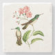 Porta copos de pedra com uma ilustração do vintage do colibri Branco-inchado de Mountaingem. Dois verdes, colibris marrons e brancos empoleiram-se no ramo de uma planta troipcal do bignonia com flores cor-de-rosa.