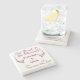 Este é um porta-copos de pedra com um tema "Coma, Beba e Case-se" com arte de copo de vinho. Inclui campos de texto para uma frase, nomes e datas. Envie uma mensagem para MineByDesign e podemos ajudar a personalizar qualquer design que você imaginar.