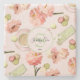 Um design de arte belo e moderna, com flores cor-de-rosa, macarões, xícara de café e uma caixa verde-clara com perfume francês. Em chiques suaves de cor rosa e verde-vintage e com um crachá rosa-redondo e verde com um monograma. Personalize alterando o texto. Escolhido exclusivamente e projetado para você pelo LifeInColorStudio.