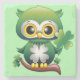 Personagem de Coruja de Desenho Animado do Dia de São Patrício Fofo em pé em um galho e segurando um Trevo de Três Folhas. Arte Vetorial Original Copyright BluedarkArt TheChameleonArt