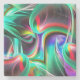 A vibrant, abstract composition features swirling patterns and bold colors, including greens, reds, and purples. The dynamic arrangement creates a sense of motion and energy.