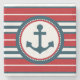 Design náutico com decoração em forma redonda com âncora sobre fundo listrado vermelho, azul e branco