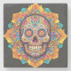 Uma imagem vibrante e intrincada, com um crânio tradicional mexicano de açúcar, adornada com flores coloridas e padrões intrincados. Perfeito para as comemorações do Dia de los Muertos ou para adicionar um toque de cultura mexicana ao seu espaço.