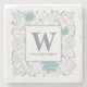 Porta-copo De Pedra Elegante Monograma Floral Cinza Azul