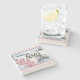 Bela porta copos de pedra - uma com apoio de cortiça - que apresenta a Torre Eiffel, as Tcherry Blossoms, e a frase Encontre-me em Paris. Há também um selo de correio simulado que diz "feito com amor".