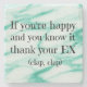 Um presente excelente para amigos e família recém-divorciados, esta porta copos certamente trará um sorriso. Mostrado aqui com um fundo de mármore estriado turquesa e imagem de texto preto.