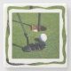 Representado no verde está um taco de golfe e bola fazendo o par, bordeado com um campo de golfe.