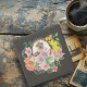 Um ouriço bonito sentado entre flores coloridas de verão num pano de fundo preto