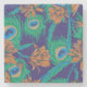 O teste padrão tropical bonito dos pássaros | com flores e o pavão vermelhos empluma-se em um fundo azul escuro. © e ® Bigstock® - todos os direitos reservados.
