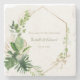 Folhas de Palmeira Verde Tropical Elegantes e Moldura Geométrica Dourada - Porta-Copos de Pedra para Festa de Casamento.