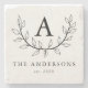 Elegantes porta-copos de pedra botânicos com o seu monograma inicial rodeado por uma videira com o seu apelido e o ano exibidos abaixo. Os porta-copos monogramados são o presente perfeito para um noivado, casamento ou Natal!