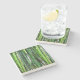 Uma porta copos de pedra com um tema asiático. Uma fotografia de uma fileira de caules verdes e amarelados de bambu.