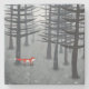 Uma raposa vermelha selvagem se situa entre os pinheiros de uma floresta escura. Uma pintura paisagística para a vida selvagem, natureza e amantes de os animais.