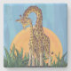 A arte de Girafa Mama e Bebê criada pela Imagine isso! Design sobre eletrônicos, acessórios e presentes é uma cena balbuciosa de uma mãe e girafa bebê em pé contra um sol de pôr e um céu azul texturizado se abanou junto com o pescoço da mãe enrolado sobre ela e seu bebê podem tocar bochechas em uma pose amorosa. Amantes de girafa de todas as idades vão adorar ter esta linda pintura de família de girafa como presente.