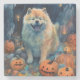 Porta-copo De Pedra Halloween Chow Chow Com Pumpkins Assustado