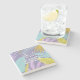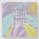 Fundo de lavanda com folhagem tropical em cores pastel azul, rosa e limão com script personalizado "olá verão"