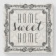 Elegante design de texto=Home Sweet home com quadro de deco de arte preta e fundo de damascos brancos.