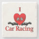 design de corrida de carros excelente para o amante de corridas. Um coração grande com bandeiras de damas cruzadas no centro. Carros de corrida em ambos os lados fazem disto um design único de um tipo I Heart.