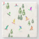 Arte legal de ilustração branca de snowboarders coloridos, descida de snowboard em montanhas entre pinheiros, spruce, árvores de abeto sobre pó fresco de neve. Snowboard e xmas esporte ao ar livre numa floresta de inverno. Dons do Snowboarder. Decoração de Natal de Snowboard.