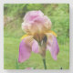 Feche uma íris roxa e roxa com barba mostrando a barba amarela