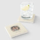 Esta porta copos de mármore tem uma design minimalista, dominante no bege, e muito romântica onde você pode colocar sua própria foto em uma maria verde com flores coloridas e borboletas. Você também pode personalizar os nomes.
