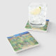 Porta copos de pedra com a pintura a óleo de Claude Monet O Jardim do Artista em Vétheuil (1880). Os girassóis e outras lindas flores azuis e vermelhas fazem um percurso no jardim onde as crianças estão dando um passeio agradável. Um presente de excelente para fãs do impressionismo e da arte francesa.