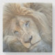 Um leão branco descansando sobre uma rocha. O leão branco é uma rara mutação colorida do leão. Fotografado no Paradise Wildlife Park, Inglaterra.