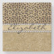Esta design é feita com manchas-leopardo marrons e um brilho dourado que brilha no fundo. O centro é deixado para personalização / personalização cercado de rochas de diamante branco. (Foto impressa)