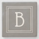 Porta-copo De Pedra Letra Inicial Cinza e Branco Monogramada Clássica