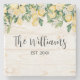 Apresentando nossa Porta copos de Pedra Branca de Limão Amarelo Monograma. Apresentando a ilustração da cor da água da fruta de limão de Verão com fundo branco de pranchas. Adequado para amantes da natureza.