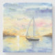 Mar ao pôr do sol. Um iate bonito sai da baía e vai para o mar. A ilustração da aquarela foi desenhada e digitalizada. Paisagem de Aquarela feita ao ar livre em 2024.