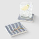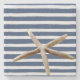 Porta-copo De Pedra Marinho Blue e White Stripes Starfish
