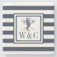 Porta-copo De Pedra Marinho Náutico Monograma Blue Stripe