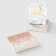 Porta-copo De Pedra Mármore de Monograma Brilho Dourado Rosa Personali