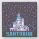 Memória Santorini. no resumo. Essa imagem mostra um desenho animado dos icônicos prédios lavados em branco de Santorini, Grécia. As casas são agrupadas e apresentam sotaques azuis, refletindo a arquitetura tradicional da ilha. O fundo está cheio de uma dispersão de estrelas roxas, criando uma atmosfera caprichosa e lúdica. A palavra "SANTORINI" está escrita em letras azuis e a negrito no fundo da imagem, sublinhando ainda mais o tema. Esta imagem é uma representação colorida e alegre do belo e popular destino turístico.