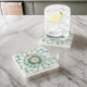 Porta-copo De Pedra Monograma Blue Teal Dourado Mandala