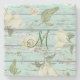 Porta-copo De Pedra Monograma de Madeira Verde Vencido com Magnolias