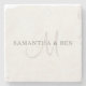 Porta-copo De Pedra Monograma de Sobrenome Elegante | Branco & Cinza