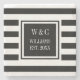 Elegante porta-copos de iniciais personalizadas com monograma apresentando um padrão de faixa preta e branca com suas iniciais e nome da família com a data estabelecida definida em um quadrado com borda preta e texto branco clássico. Criado por Thisisnotme©
