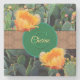 Mostre seu amor por tudo o sudoeste com este lindo e brilhante design de foto de flor de pera cor de laranja picante com uma caixa de texto verde-escura sobre uma faixa de um padrão de aparência tribal nativo em tom impresso em uma porta copos de pedra. Personalize-o com a grande variedade de estilos de fonte e cores do Zazzle a serem escolhidos. Você também pode transferir este design para outro produto, se preferir. Por favor, não hesite em contactar-me se precisar de ajuda, e ficarei muito feliz em ajudá-lo. Você pode me contactar em KarenCoffelt@wolfmoonartanddesign.com. Esta foto foi tirada no Boyce Thompson Arboretum em Superior, Arizona. Direitos autorais originais de fotografia 2016 e direitos autorais originais de design 2018 de Karen Cofsense.