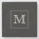 Esta porta copos de pedra tem um design mínimo com seu quadro inicial em um quadrado branco sobre um fundo preto
