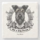 Esta imagem é uma ilustração a preto e branco de um cão vestindo óculos e uma roupa inspirada em steampunk. O cão está rodeado de engrenagens e outros elementos mecânicos, sugerindo um cenário futurista ou de fantasia. O cachorro tem uma expressão séria e parece estar olhando diretamente para o espectador. Abaixo do cão está uma faixa que lê "Não é uma Pessoa Canina", o que adiciona uma reviravolta humorística e irônica à imagem. O estilo geral da ilustração é detalhado e intrincado, com uma sensação de precisão mecânica e um toque de capricho. A imagem pretende ser uma declaração sobre o amor dos cães e as personalidades únicas de cada canino.