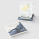 This elegant coaster features a digital image of white marble and navy blue agate trimmed with silver faux glitter. Personalize it with your name in white handwriting script.