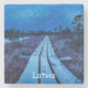 Vista panorâmica de pântanos à noite com caminho de madeira, pequenas lagoas e pinheiros. Caminho de caminhada de madeira que atravessa o pântano contra a lua de cheio e o céu noturno com estrelas.