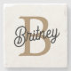 Porta-copo De Pedra Nome do Monograma Elegante Moderno Script Dourado