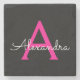 Porta-copo De Pedra Nome do Monograma Girly Black Script Hot-Pink