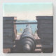 Esta fotografia, tirada sobre um forte ao lado do lago de madeira, leva o olhar do espectador para o cano de um canhão do século 18 e para fora sobre as águas azuis do lago.