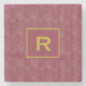 Porta-copo De Pedra Padrão Chevron Herringbone Inicial Vermelho Luxuos