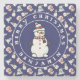 Esta porta copos de mármore azul marinho apresenta um boneco de neve no meio, com um padrão de boneco de neve ao redor da borda. Um presente personalizado prático para trazer todos os anos para os seus rapazes e raparigas. Para alterar o texto, clique no botão personalizar. Este design contém IA.