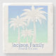 Sinta as vibrações relaxantes e de verão com este design de palmeira tropical moderno de três, silhuetas de árvores brancas contra um fundo azul e verde ombre. Palm Tree Coastal Blue Sky Ombre Name Stone Porta copos é um presente de excelente ou para sua própria casa de praia decoração de verão com um nome personalizado área de personalização. Tenha boas vibrações toda vez que você olha para esta imagem, sabendo que palmeiras simbolizam paz, abundância e sucesso. Há itens correspondentes, como travesseiros e arte de parede, para esta coleção também!